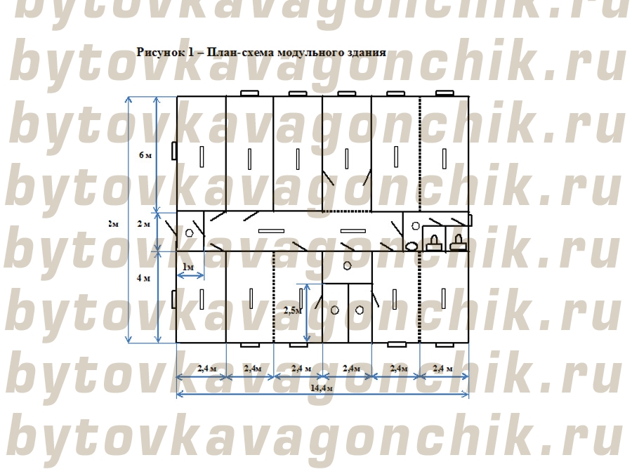 Блок –модуль 14,4*12,0*2,5м  из  БК 6,0*2,4*2,5 -6шт. и БК 4,0*2,4*2,5 -6шт.