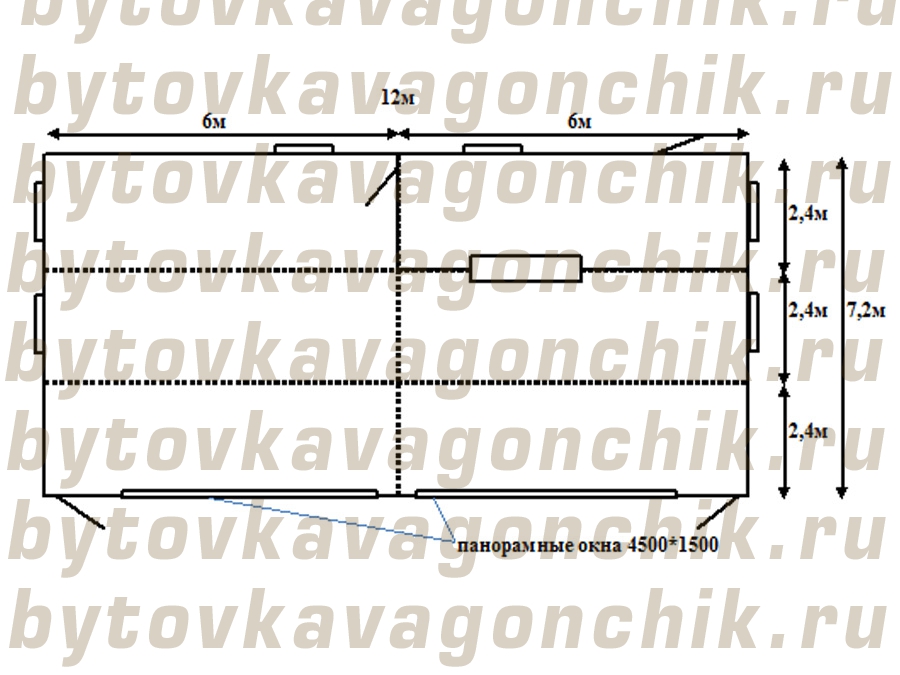 Блок -модуль 12*7,2*3,0 из  БК 6,0*2,4*3,0 -6шт.     (Кафе/Столовая)