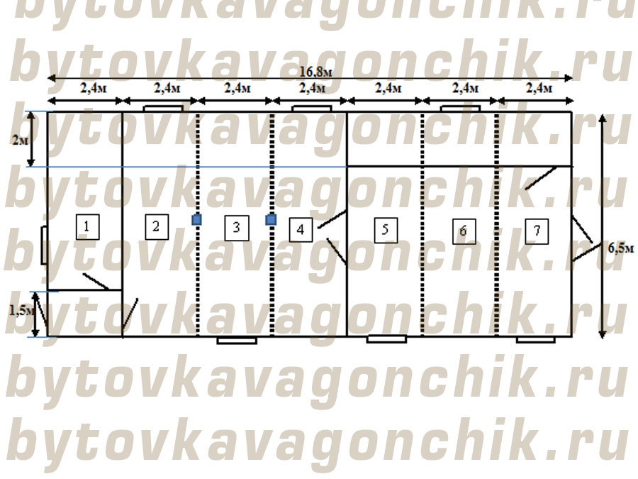 Блок –модуль 6,5*16,8*2,5 из  БК 6,0*2,4*2,5 -7шт.   (Склад/раздевалка)